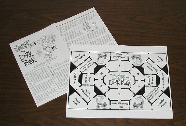 Published in issue #4 of Dork Tower. The players are at a game convention where they are being pursued by a monster. The board represents the convention area of a hotel, composed of 25 rooms separated by 42 doorways. You need to provide a pawn for each, some pennies, 1D6 and a 'Master Pawn' to represent the monster. The object is to not be caught by the...