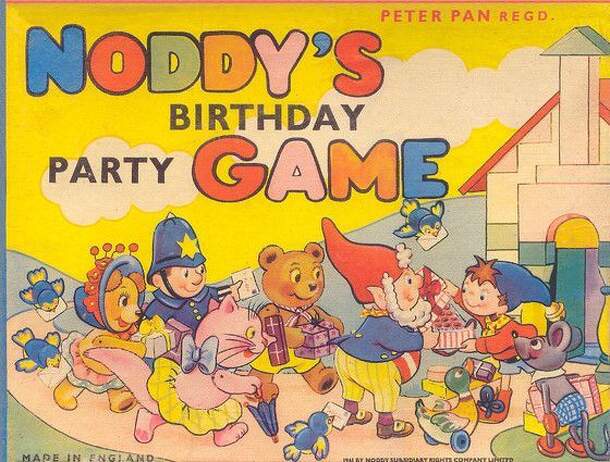 A rather complicated board for the age group that would normally enjoy a Noddy related game. Each player chooses a character and the associated playing piece. There are 6 face-down counters and when you set off along the track you must take one. Turn it over and that tells you which present you are taking to Noddy's house (example present might be a cake)....
