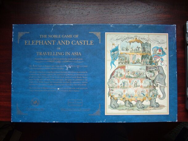 The Noble Game of Elephant and Castle was first published in 1822 as a hand coloured engraving by William Darton of London. The game is played on a magnificent board depicting an elephant surmounted by a howdah (ornate carriage) with an Indian mahout (driver). The mysteries of the Orient are discovered through a grand tour from the Frozen Ocean in the...