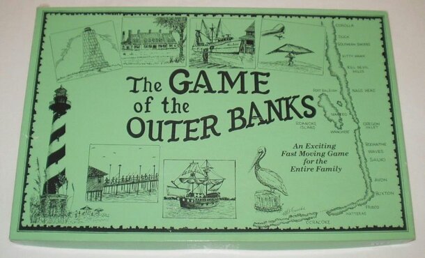 This is a monopoly style game with a North Carolina travel theme. Features a colorful board with local landmarks; the cards represent various business locations and tourist attractions. Players move around the board track, purchasing properties and seeking to be the final player remaining when all others have been bankrupted. Sponsored by the Outer Banks...