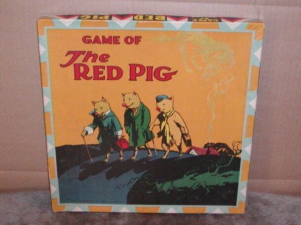 Game circa 1930's from Parker Brothers. This is sort of a spin and move game where depending on what number you get from the spinner you move forward that number of places on the board. There are certain places on the board with special letters on them. Those spaces allow you to move forward extra spaces. Landing on places with Black dots make you move...