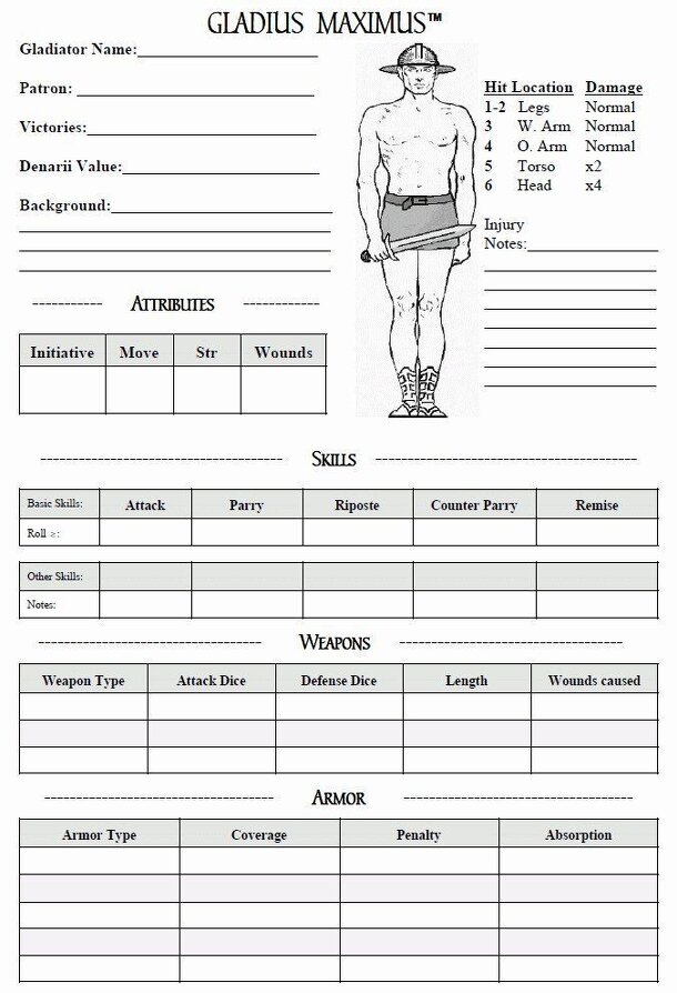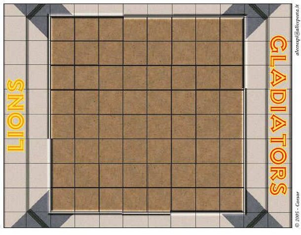 Pen 'n' Paper game of Gladiators fighting in an arena with weapons shield and Lions. there is an example gameboard that can be printed, or you can draw a grid to fight on. Also this game can be factured in an RPG battle The Gladiators Roll a D6 to Move each turn, when you move into contact with another Gladiator a clash happens, the results from a clash...