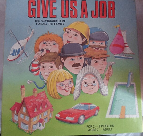 Give Us A Job is a roll and move game where players are trying to get a job, keep it, and then gather enough money to be able to buy five luxury items and have £100,000 in cash. There are chance cards and players collect a salary every time they pass their home square. The items required to win the game are: a helicopter, a house, a yacht, a sports car and...