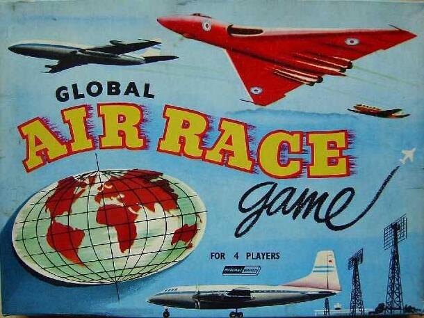 This game was created by Replogle Globes in 1952, and is quite innovative for a 'spinner' type point-to-point race game. It features an accurate metal globe on a stand from the 1952 time period, and at the base of the globe, a spinner (that when spun, moves around the globe base until stopping at a number). A set of 4 metal planes are included to act as...