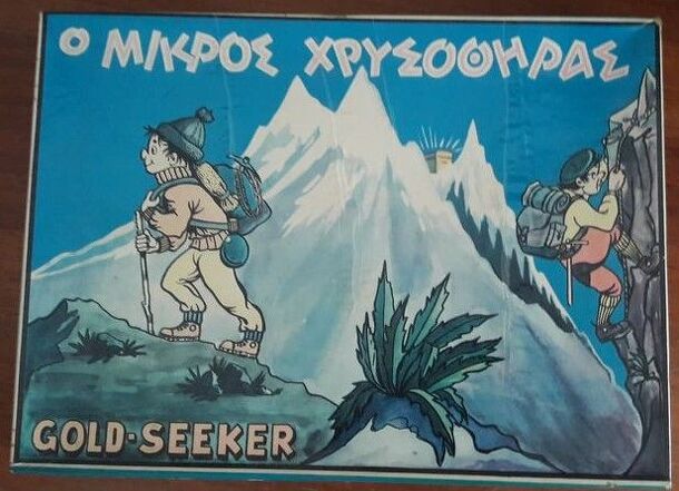 A rare greek board game from the mid 60's. It was released from ΕΡ.ΚΑ.Π. toy company. A simple roll the dice (roulette) and move board game for 2 players. The winner is the player who arrives first at the top of the mountain with the exact number of steps and finds the treasure. There is a surprise for the winner. When he arrives at the end, he put a screw...