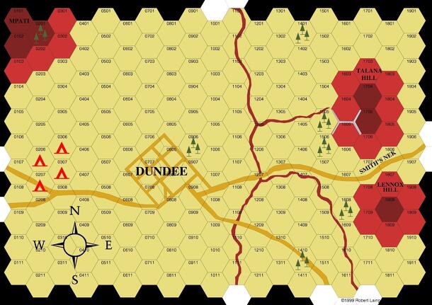 A wargame depicting the Battle of Talana Hill -- October 20, 1899. A deck of playing cards determines who does what and when (if a red card is drawn, the British player activates one counter. If it is a black card, the Boer player activates one counter.) Players win by obtaining more victory points than their opponent. Victory points are obtained for...