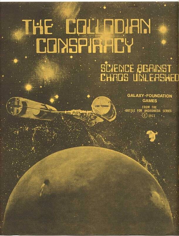 The Collodian Conspiracy is a strategic game in Galaxy-Foundation Games' strategic Battle for Andromeda: Conflict for a Trillion Suns! series. It uses the series rulebook, Andromeda Foundation Official Battle Manual. This particular game pits the Collodian Confederation (colonial outposts of the Xenon Empire) against the Kons Empire (or Dirak of Kons). The...