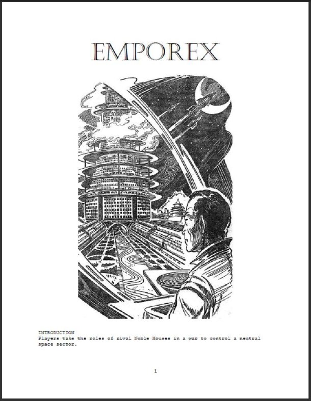 “Players take the roles of rival Noble Houses in a war to control a neutral space sector.” The object of the game is to be the first player to control every planet on the map. The game is played on a 10x10 hex grid, with the Homeworlds located in the corners. The other 20 planets are randomly distributed by rolling 10 sided dice to determine coordinates....