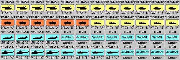 The basic OPFOR used in Gators!, Airborne!, and Rangers! is based on American equipment from the 1950's and 60's. These new additions to the OPFOR are based on 1980's-vintage weapons from the Soviet Union, and they pack a lot more of a wallop. Most of these vehicles were exported to other nations, so your scenarios can still be based on brushfire wars...