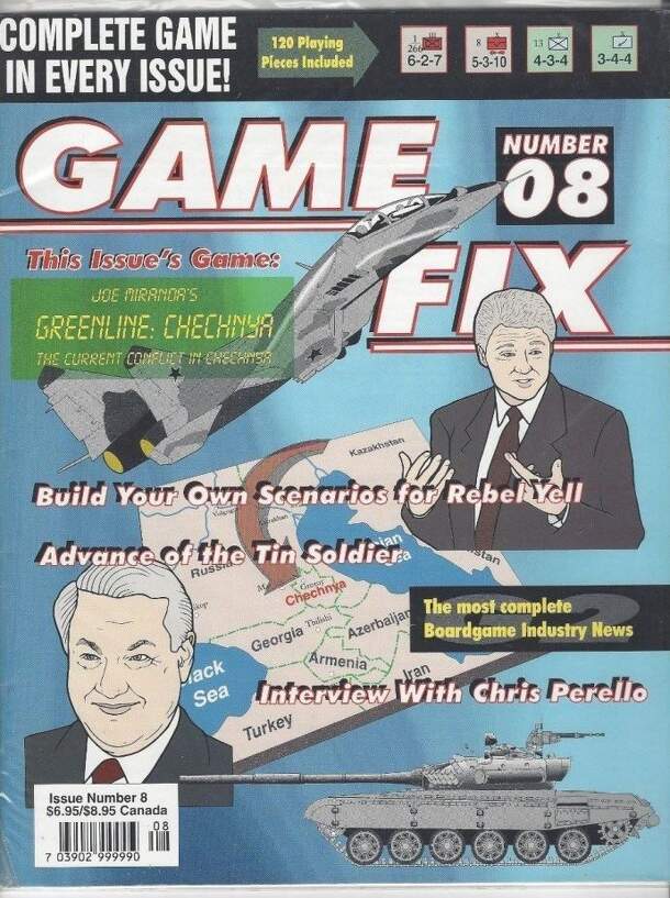 June 1996 Gamefix issue #8 on the then and still is current event in Chechyna. The game has four scenarios which range from the historical, to Chechan first strikes and a larger Russian Civil War. In addition, a random events chart covers everything from Chechan "terrorism" to Russian anti-war protests and UN ceasefires. The game ends either in a UN...