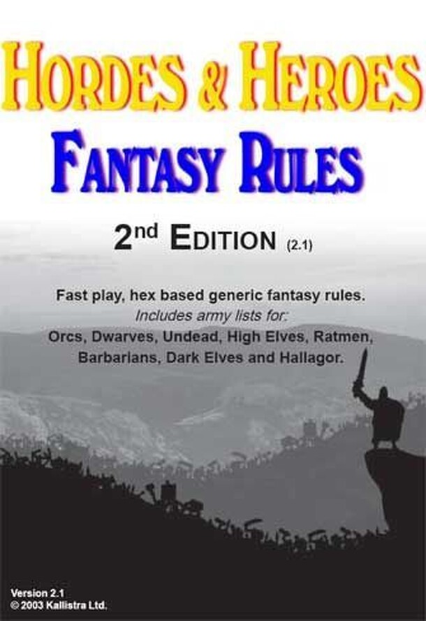 Hordes & Heroes Medieval Fantasy rule system is based on H&H Medieval with the addition of magic and special rules to reflect the particular fighting characteristics associated with particular fantasy armies. It is designed as a fast play tabletop wargame, which uses hexagon marked terrain as a precise and effective method for moving troops. The rule...