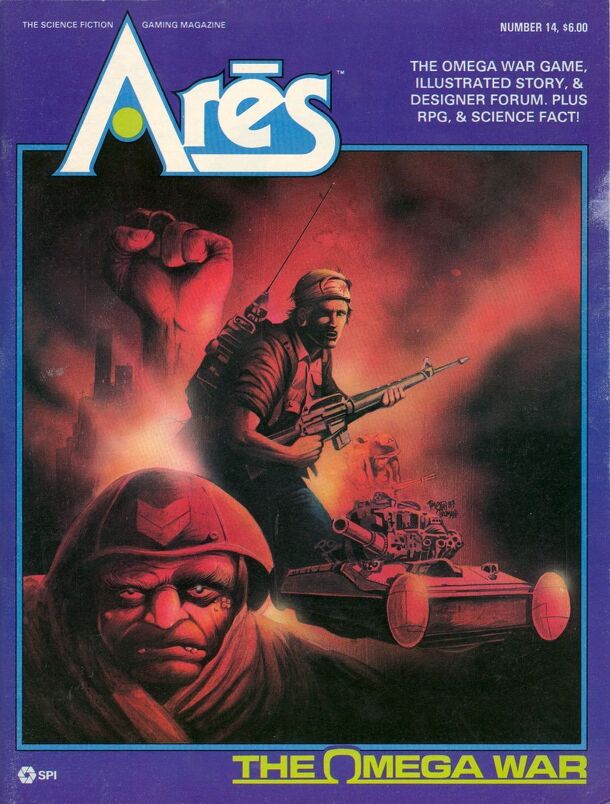 Ares Magazine #14. The Omega War is a post-apocalyptic fight for North America, 2419. World Union forces fight against "Omega Organization" rebels. Armageddon... 2121... the year the missiles fell. For three-quarters of a century man had held the atomic genie in check. Then the long-dreaded nightmare happened. The nations of Europe and North America went...