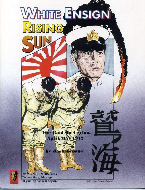 (from the rules:) White Ensign/Rising Sun (WERS) covers the Japanese raid on Ceylon under Vice-Admiral Nagumo into the Indean Ocean in April 1942. This raid sank and destroyed shipping in the Bay (including the British carrier Hermes) and destroyed targets in and around Ceylon. It is based on Norway 1940: The Kriegsmarine Strikes. Components: 2 22x34" game...