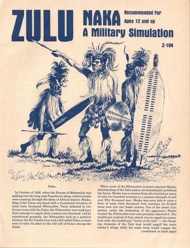 Zulu battle of Naka is one of the series of games put out in the late seventies by Bearhug Publications... It is a small map small counter game that can be played in less than an hour. It has a nicely old style brown coloration style map but is fairly bare in regards to terrain..the counters represent the Army of Shaka Zulu and the opposing tribes that the...