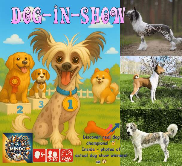 Dog-In-Show is a joyful and strategic board game where players become dog breeders, trainers, and handlers, all striving to raise the most outstanding dogs and win the coveted "Best in Show" trophy. Each player starts with a puppy and uses training cards to secretly improve its beauty, agility, and obedience over time. The game blends secret actions, open...