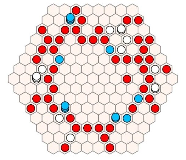 Unlur, the winner of the 2002 Unequal Forces Game Design Competition (sponsored by About Board Games, Abstract Games Magazine, and the Strategy Gaming Society), is an abstract strategy game played on a hexagon-shaped tessellation of hexagons with eight hexagons on each side. Unlur is also a game of unequal forces -- each player has a different objective....