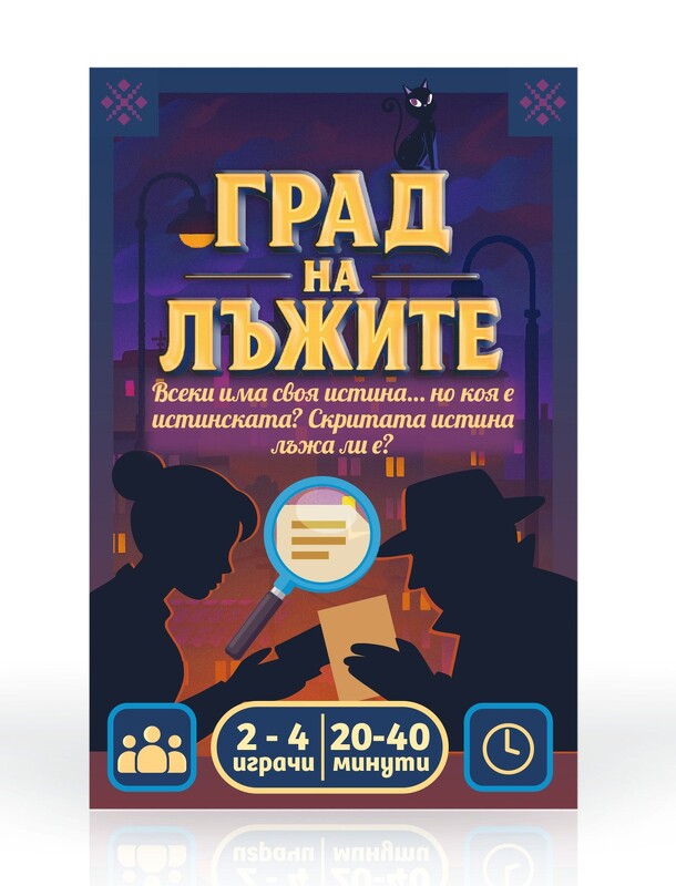 Град на Лъжите is a competitive party card game of bluffing, deduction, and sabotage set in a noir city where evidence disappears and rumors become weapons. Players build their own case by playing evidence for Truth points, while using action and deception cards to disrupt opponents and protect themselves. On your turn, you draw and play a card: secure...