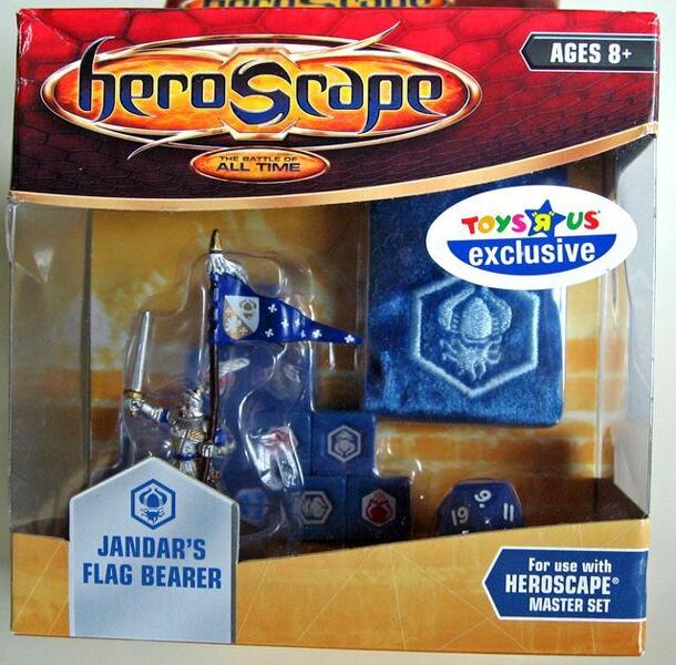 Jandar's Flag Bearer adds 1 Unique Hero to your Heroscape Army. Contents: Sir Gilbert Components: 12 Jandar Valkyrie Dice 1 Jandar 20-sided die Felt Dice Bag "Energize your Jandar Army! Sir Gilbert may give your Jandar-led figures an extra attack die. The Valkyrie dice may move then an extra space for each Valkyrie symbol you role. Use the Valkyrie dice in...