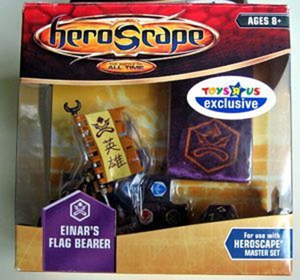 Einar's Flag Bearer adds 1 Unique Hero to your Heroscape Army Contents: Hatamoto Taro Components: 12 Einar Valkyrie Dice 1 Einar 20-sided die Felt Dice Bag "Protect and Defend your Einar Army! With the special powers of Hatamoto Taro and the Valkyrie dice, your Einar-led Samurai and Ashigaru will get an extra shield for each Einar symbol you roll! Use the...