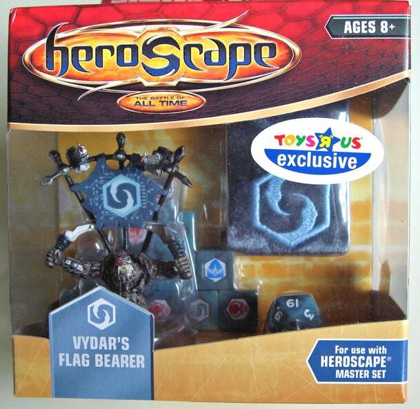 Vydar's Flag Bearer adds 1 Unique Hero to your Heroscape Army Contents: Laglor Components: 12 Vydar Valkyrie Dice 1 Vydar 20-sided die Felt Dice Bag "Power up your Vydar Army! With Laglor nearby, your Vydar-led figures may increase their range. And with a roll of the Valkyrie dice, Laglor may launch multiple attacks! Use the Valkyrie dice in normal combat...