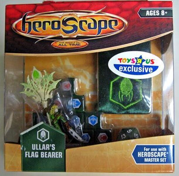 Ullar's Flag Bearer adds 1 Unique Hero to your Heroscape army. Contents: Acolarh Components: 12 Ullar Valkyrie Dice 1 Ullar 20-sided die Felt Dice Bag "Revive and Mobilize your Ullar Army! With Acolarh's Leaf of the Home Tree Aura and a roll of the unique Valkyrie dice, your wounded Elves may be healed. This powerful wizard may also move your Ullar-led...