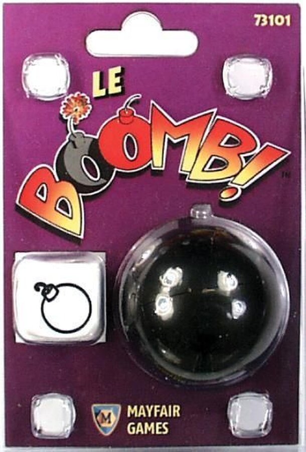A single die game/activity akin to LCR or Dreidel. Roll the die: the Boomb either stays put, changes owners, or explodes. Last person in wins. (From the publisher's webpage) Fun, Silly, easy to learn and loads of fun! Le Boomb is a casual, social game for 2-16+ players ages 6 and older. You can play in about 5-15 minutes. Here's all you need for a portable...