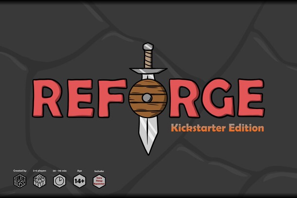2-6 players battle it out battle royale style in a race to craft the strongest weapon! Players play the role of a warrior that must combine different grips, guards, and blades to create a fantastical weapon! Game Prep: Each player has a space in front of them known as the Forge where they place different card types including blades, grips, guards, shields...