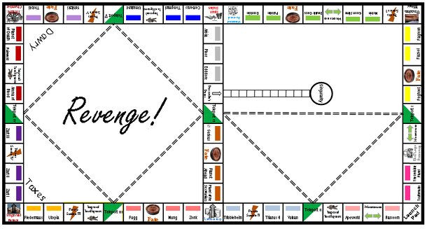 User summary: REVENGE! began with a pair of heavily modified Monopoly boards and a greatly expanded set of rules, adding numerous complications and special situations to the game. Rather quickly, REVENGE! evolved into a completely original game that featured an intriguing blend of complex board game and basic elements of role-playing. The game generally...