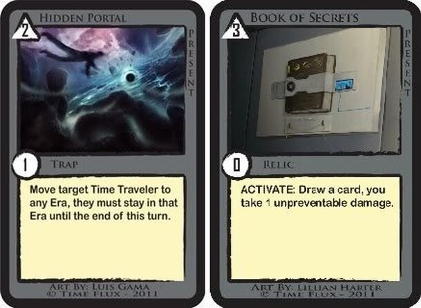 Time Flux is an EXPANDABLE CARD GAME (ECG) based on time travel that is designed for 2-4 players. Each player is represented by a "Time Traveler". Your Time Traveler is your character card that has special abilities and can travel through time by moving in and out of "Eras". Eras are several cards that make up a playing surface similar to a board game....
