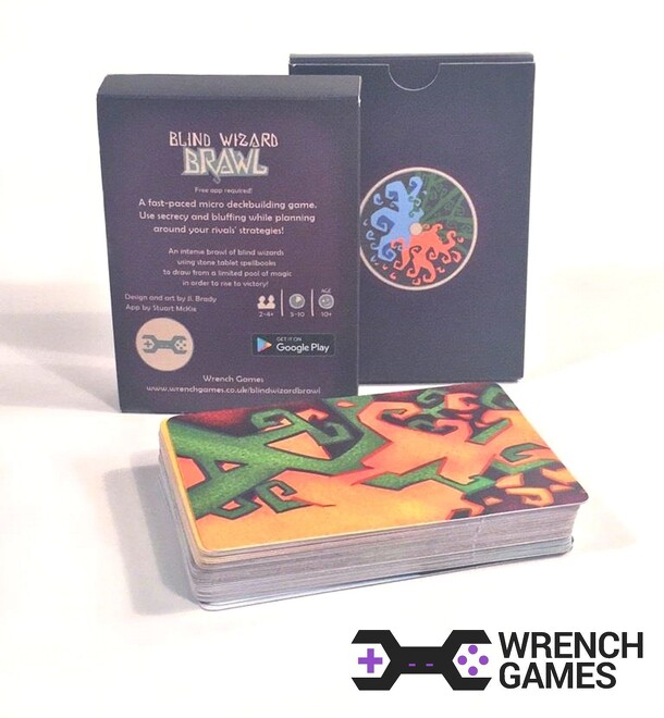 Blind Wizard Brawl is phygital card game by Wrench Games. It's a mini deck building dueling game where players combat to become the most powerful wizards in the land. Combining classic cards and a digital app, blind Wizard Brawl combines the classic table top staple with the modern convenience of an app. In a world where magic is the key to all life...