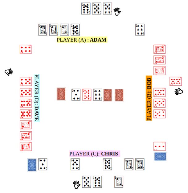 Battalions is a card game for 2-4 players which uses two packs of 52 standard playing cards. The game is played over a series of rounds in which players are trying to manoeuvre cards from a battalion pool in front of them and in to their hand (deployment). When any player has succeeded in deploying 5 cards (i.e. have 5 cards in their hand) the game ends...