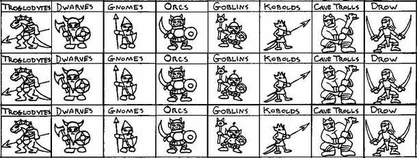 The game is played on a chessboard or 8x8 grid representing a subterranean setting. The map is randomly generated each game by filling the board with sixty-four terrain tiles. Each player starts in control of one Lair. The object of the game is to occupy all eight Lairs on the board. The players earn Gold to build an army of cave creatures, such as...