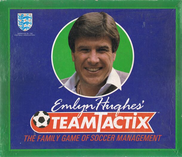 "Emlyn Hughes Team Tactix" is this game's full title and it's a vintage football board game promoted by the late great Emlyn Hughes and endorsed by the English FA. The object of the game is to build a team of 11 top class players within the playing time of 90 mins. The teams are drawn from a deck of glossy color picture cards representing the 11 first team...