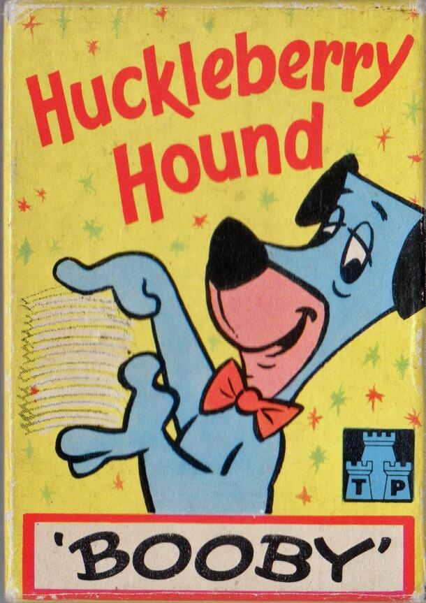 This is a slightly altered variant of Old Maid or Donkey. 36 cards featuring characters from The Huckleberry Hound Show, such as the Hound himself, Mr. Jinks, Yogi Bear and Pixie & Dixie. Players must collect pairs of the same card. Curiously, the company have included two 'Booby' cards and added the instruction 'one is spare and should be removed before...