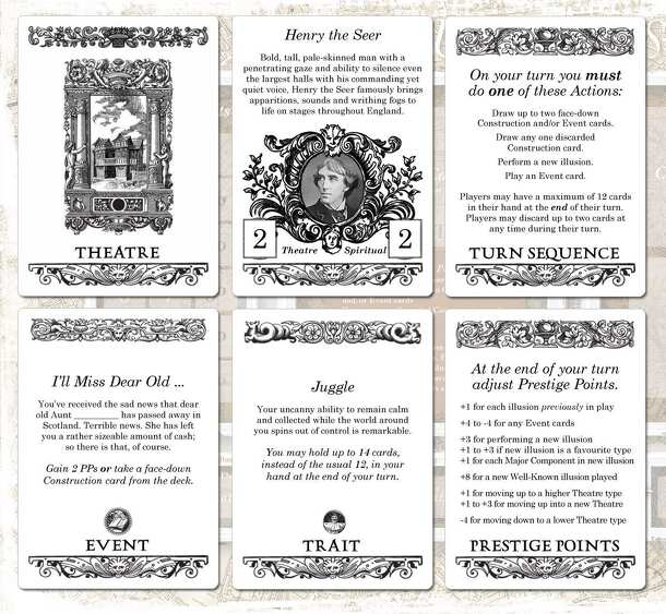 The Illusionist is a card game for 2–4 players who play rival Victorian-era magicians/illusionists. The goal of the game is to become the City's most prominent performer by having the highest number of Prestige Points at the end of the game. Prestige Points are earned by creating/assembling astounding illusions and “performing” them at various types of...