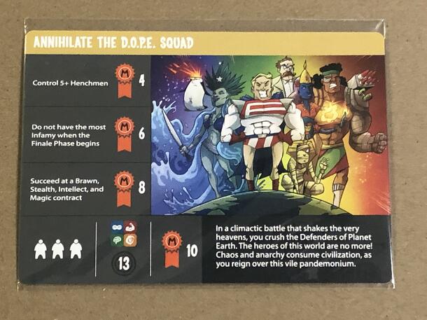 Maniacal is a strategy game in which 2-5 aspiring supervillains compete to become the most infamous in the world. Choose from one of five villains, each with unique abilities and weaknesses. First, build a secret base by drafting from over seventy different rooms, such as a Robotics Lab, Massage Parlor, or Torture Chamber. These rooms will attract a motley...