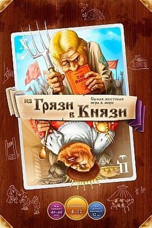 From publisher: From Rags to Riches (Make carrier in a fairy-tale world!) is a role game based on a comical medieval world. The players occupy varying social levels from servants all the way up to the King. Each player tries to make the best carrier possible. The game process copies that of the Russian card game Durak (or “Fool”...