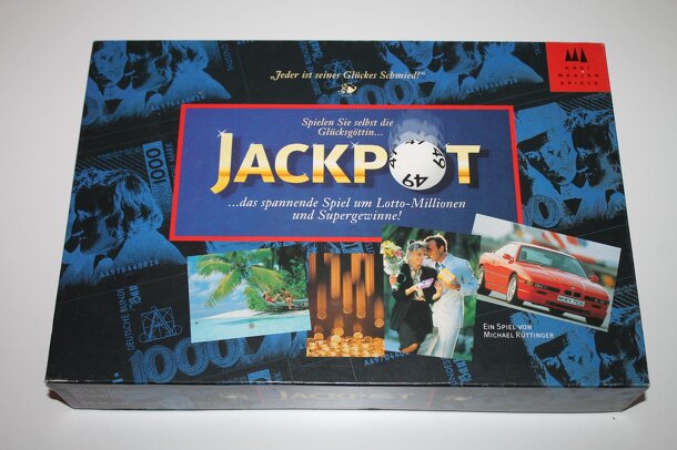 A pick-6 lottery game in boardgame form. Players choose ten of 49 Lotto numbers at the start of the game. They have the opportunity to purchase more numbers as they land on the numbered spaces of the game board, which also correspond to several mini-games and the opportunity to win or lose money. Players try to purchase possessions with their winnings, for...