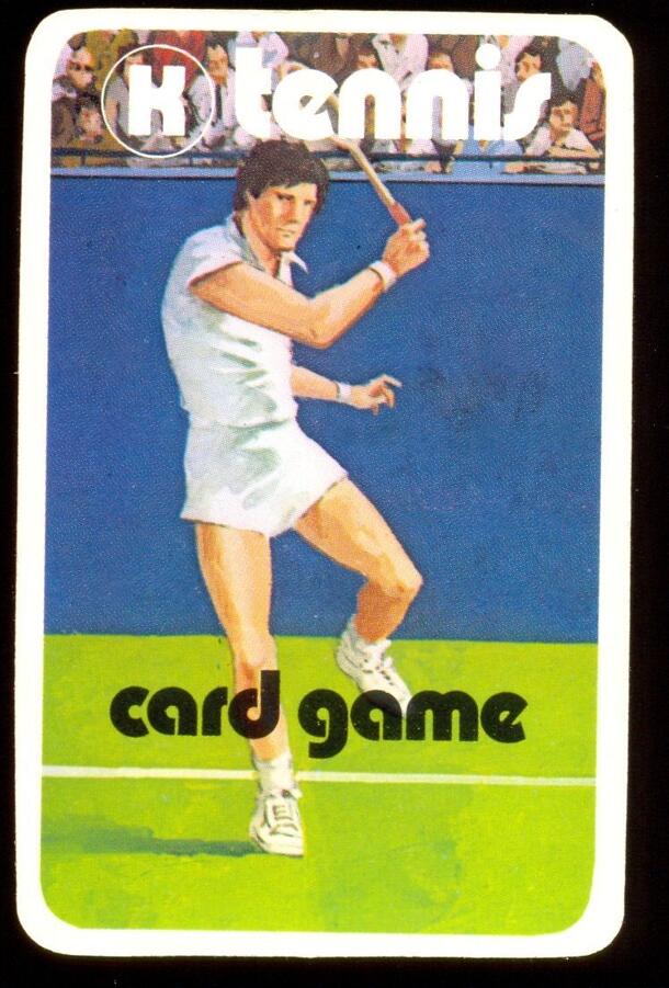 The game consists of 50 cards comprising 22 service cards and 28 play cards. The service cards dictate whether the service is to the backhand, forehand an ace or a fault. The play cards are made up of 5 each of the 4 combinations of backhand/forehand to backhand/forehand and 4 smash and 4 lob cards. Scoring is the same as in lawn tennis. The two packs...