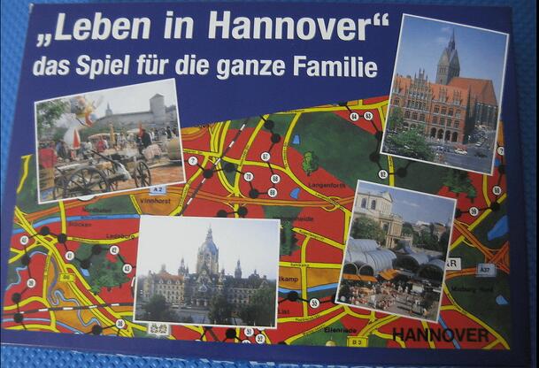 Published about the German City of Hannover. By playing the players get to know a little bit about the city and its shops. During each player's turn they roll a six-sided dice to move along a game-board depicting a map of Hannover. At certain spaces players can acquire cards of the shops or they can go sightseeing by following the instructions on the back...