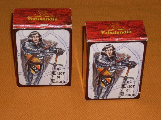 A collectible card game of the early '90s. Description from rules: "It 'set in medieval Europe, an era full of myths and legends that we intentionally revisited with historic elements and other purely fantastic. Each player plays the parts of a royal family, consisting of a king, a queen, a prince and a princess. The goal is to eliminate as many opponents...