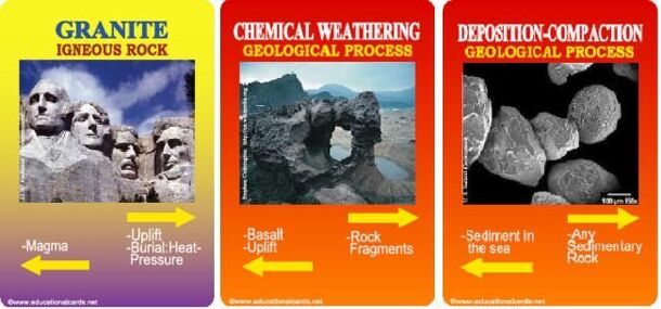 RULES (for 3 or 4 players) AIM: To collect and arrange five cards in "rock cycle" order. Cards represent rocks and geological processes, these must be collected and displayed in the right order depending on the Rock Cycle (see below). Each single card tells what are the preceding and the following cards. The "Burial: heat-pressure" card is very important...
