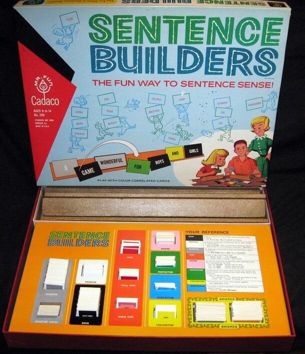 Object of the game is to make high score by building a series of sentences with different word requirements. Cards are separated by various parts of speech (color coded. Each player gets a card rack and stores their cards like you would place your scrabble tiles. Instead of making words with letters you make sentences with words. The game is separated into...