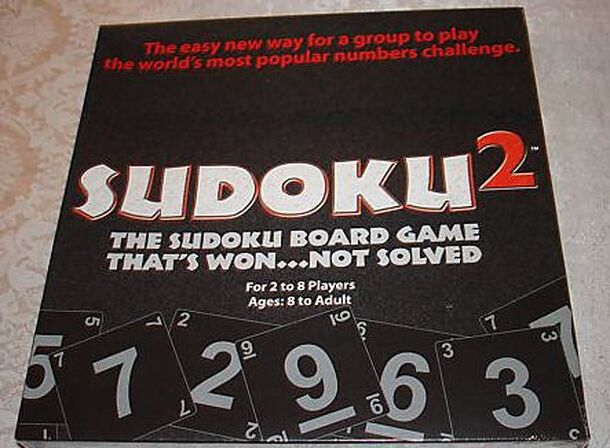A whole new way for a group to play the world's most popular numbers challenge. There are no puzzles! Just be the first to place your number cards by using the Sudoku number rules. For 2 to 8 players. Components: Sudoku board with 81 blanks spaces. A deck of 90 cards consisting of nine sets of numbered cards (labeled 1 through 9) and nine Switch cards....