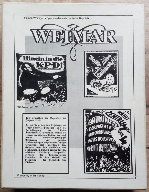 This game captures the political and economical going-ons of the first German republic (the so called "Weimarer Republik") from 1920-33. Players take the roles of one of the major political parties (from communists down to the Nazis), trying to win elections and have their politicians in the government. Laws are made in a roleplaying style, which change...