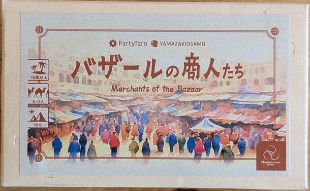 Merchants of the Bazaar is a trading game for exactly 6 or 7 players. In the game, the players are split between traders who sit at stalls, and traveling merchants who visit the different traders. The game takes place in real time and the players are trading cards which score differently depending upon the player's role in the game. At the end of the game...