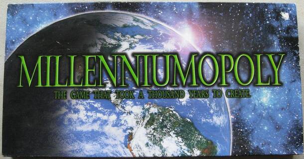 This seems to be a knock-off of a Monopoly game in which you travel through time "buying" people and inventions. The board and game play is similar, except that all the prices are $50-$75 more and the "Chance" and "Community Chest" cards are very different from Parker Brothers "traditional" cards. Also, the colors are a bit different than the Parker...