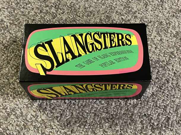 A game of slang expressions. One person/team gives a slang expression, the opposing team must come up with the definition. 300 cards included in game, 5 categories on each card. Things To Do, Places To Go & People To See, Grab Bag Rally, Whatchamacallits, Kissing Cousins. Subcategories sometimes provided. Rolled die determines category chosen. Each card...