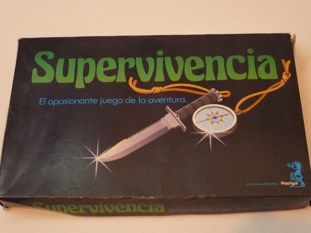 A game about survival. The players represent a group of survivors of a helicopter crash in the middle of the Amazon rainforest. Each player has eigth starting objects and the goal of the game is finding nearest village (the end of the board). The first player to succeed wins. Using the dice to advance, every now and then some player lands on a red dot...
