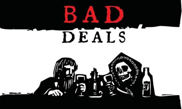 Bad Deals is a trading and hand management game where players trade soul and related contract cards so that the ones in their hand would be fulfilled. During their turn the active player proposes a partially hidden set of cards to trade, for example "2 Hearts" or "1 Monk". The other players do the same then the active player chooses who they trade with. At...
